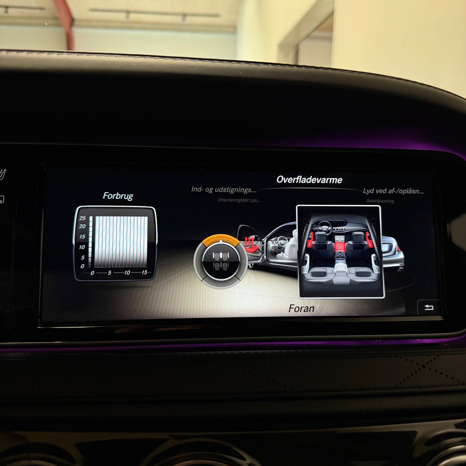 kørecomputer, digitalt cockpit, multifunktionsrat, læderrat, læderindtræk, el indst. førersæde m. memory, el indst. forsæder, mørk loftbeklædning, integrerede rullegardiner, ambiente belysning, massage i førersæde, massage i forsæder samt bagsæder!, el komfortsæder, el-justerbar lændestøtte, alufælge, el-soltag, glastag, fuld led forlygter, el-klapbare sidespejle m/varme, mørktonede ruder i bag, adaptive forlygter, varme i rat, ratgearskifte, 4 zone klima, fuldaut. klima, automatgear, aircondition, nøglefri adgang, adaptiv fartpilot, adaptiv fartpilot med kø-assistent, nøglefri tænding, fjernb. centrallås, sædevarme, sædekøling, udv. temp. måler, varme i bagsæde, 4x el-ruder, automatisk start/stop, el betjent bagklap, luftundervogn, elektrisk parkeringsbremse, navigation, cd/radio, musikstreaming via bluetooth, usb-a tilslutning, håndfrit til mobil, bagsæde underholdningssystem, bakkamera, parkeringssensor (for), parkeringssensor (bag), dæktryksmåler, alarm, regnsensor, airbag, automatisk lys, nightvision, isofix, skiltegenkendelse, fjernlysassistent, træthedsregistrering, esp, blindvinkelsassistent, auto hold, vognbaneassistent, antispin, automatisk nødbremsesystem, Burmester, AMG LINE, Parfume, Massage i 4 sæder, Airbagseler, overfladevarme.